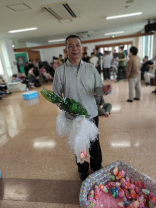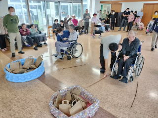あいにくの雨天のため、外では開催できなかったものの、 室内でミニ運動会を行ないました。 また、地域の畑をお借りして、サツマイモ掘りも行ないました。